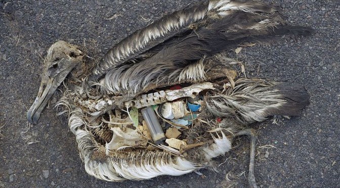 I ett av de första numren av den där tidskriften – som vi för övrigt finansierade på egen hand – publicerade vi fotografier av döda albatrosser, tagna på en ö mitt i Stilla havet. Dessa bilder av fotografen Chris Jordan har sedan dess kommit att bli närmast ikoniska. På bilderna ses de gråa, halvt nedbrutna, fågelkropparna rama in ett maginnehåll som är märkligt färgglatt. Dödsorsaken är plast.